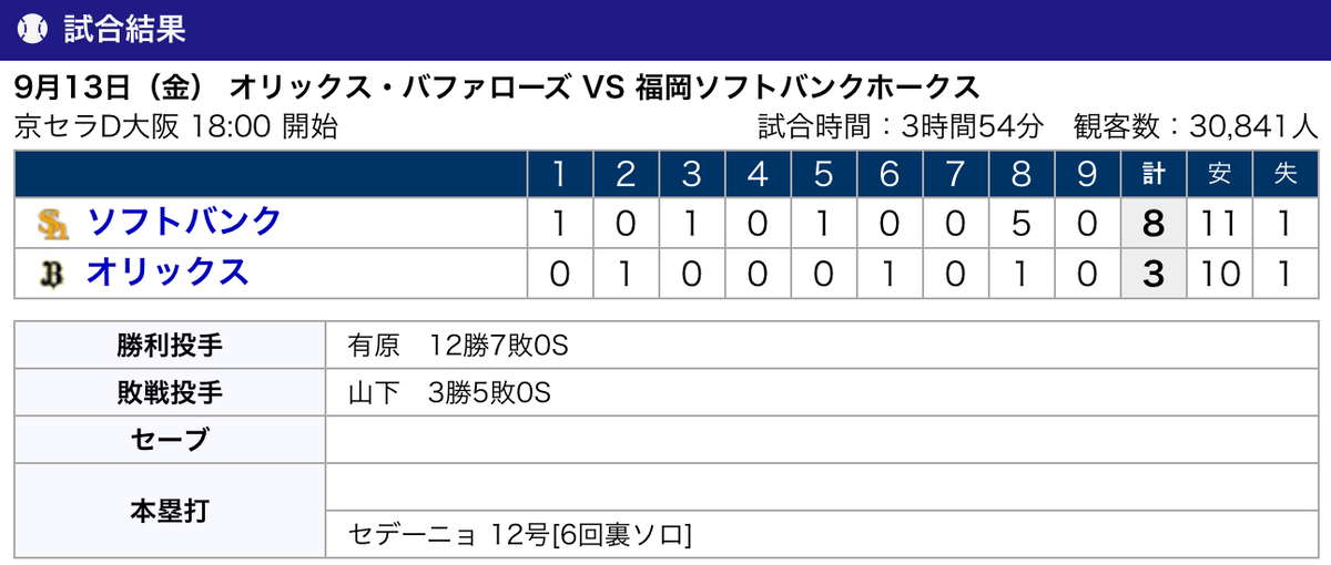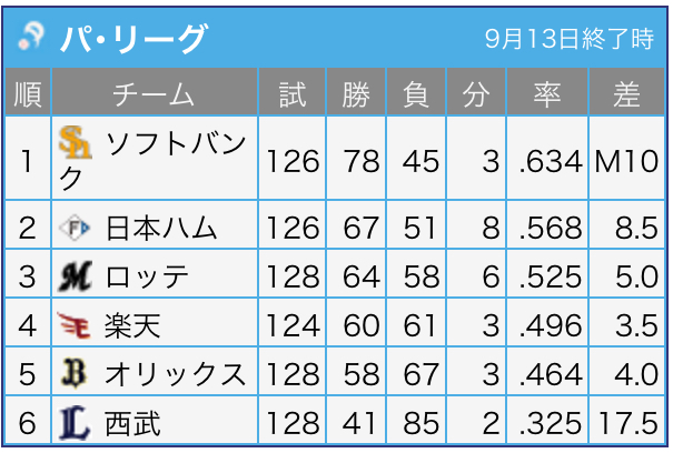 小久保ホークス、8ゲーム差以上を保ったまま、ついにマジック10。